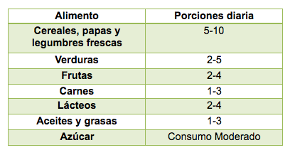 Cabe recordar, que por cada nivel de alimento, se deben consumir más de 1 porción diaria, con ciertas excepciones, como lo son el azúcar refinado y los aceites.